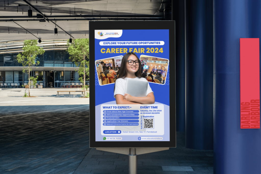 Using a modern layout, inspiring visuals, and a confident color scheme, the design highlights the key themes of growth, opportunity, and direction. It effectively communicates the purpose of the event—connecting attendees with career guidance programs, training sessions, and industry experts who can help shape their professional future.